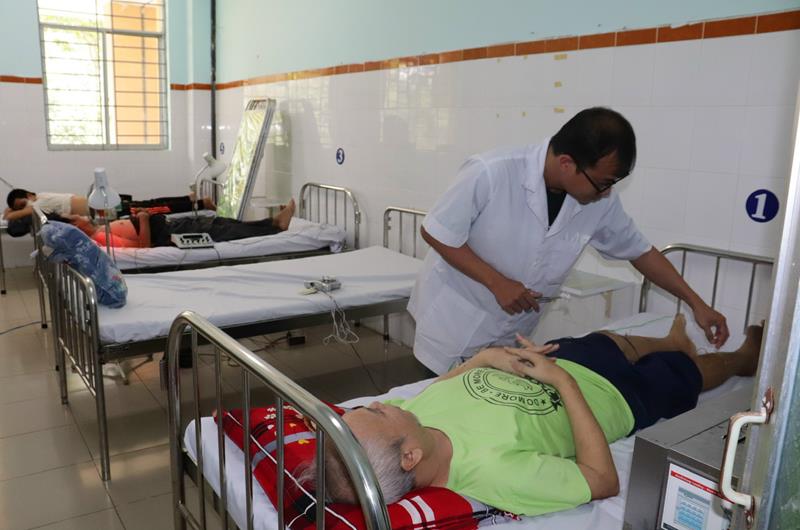 Nhân viên y tế chăm sóc bệnh nhân điều trị nội trú tại bệnh viện