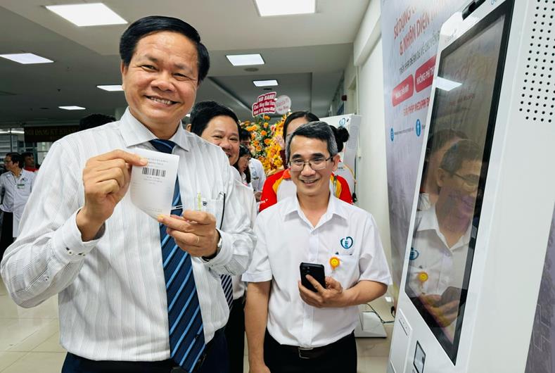 Trong khi đó, Kiosk y tế thông minh tự phục vụ toàn trình. Khi bệnh nhân đưa căn cước công dân vào, máy sẽ đọc và thực hiện định danh điện tử và kết hợp sinh trắc học của bệnh nhân. Bệnh nhân đăng ký khám, tái khám tại các phòng khám của bệnh viện. Nếu bệnh nhân không có thẻ bảo hiểm y tế thì có thể quét thanh toán viện phí ngay trên Kiosk rồi nhận phiếu vào phòng khám. Bệnh nhân không phải đi qua các quầy đăng ký tiếp nhận ban đầu cũng như quầy thanh toán viện phí, giảm tải được cho bệnh viện, giảm thời gian chờ đợi.