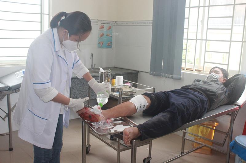 Nhân viên y tế trạm y tế xã Thanh Sơn, H.Định Quán sơ cứu ban đầu cho bệnh nhân