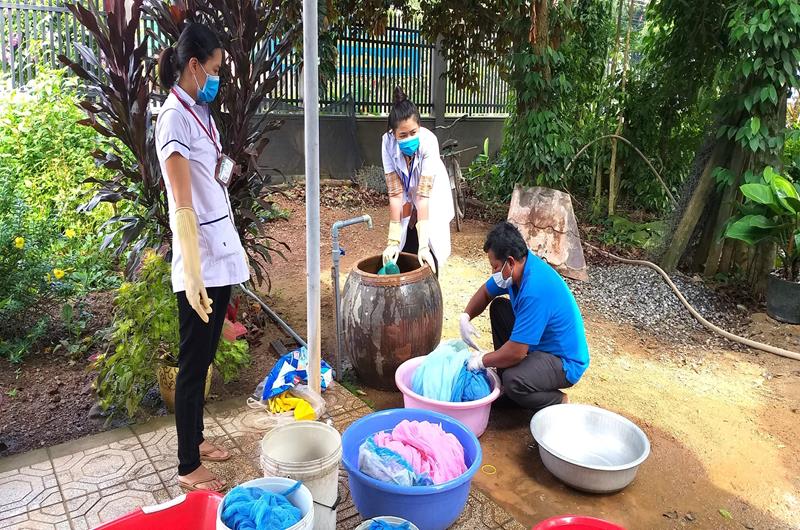 Nhân viên y tế H.Vĩnh Cửu tổ chức tẩm mùng hóa chất để diệt muỗi, phòng bệnh sốt rét cho người dân trên địa bàn