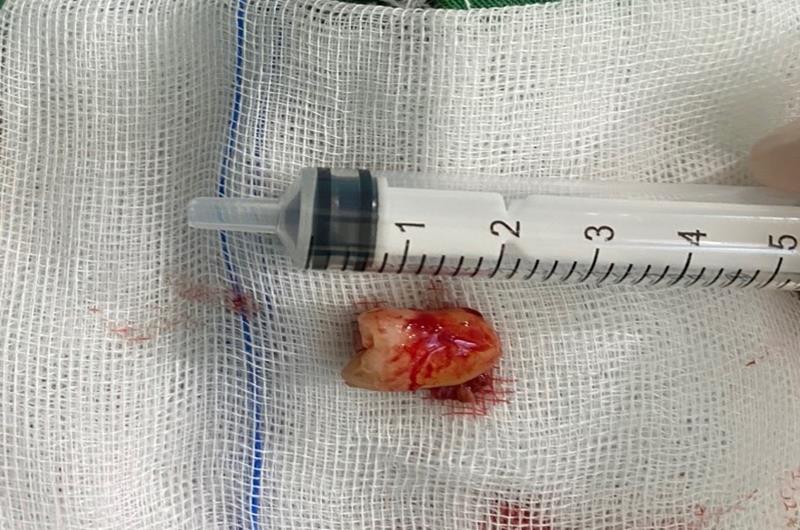 U nang thân răng được lấy ra khỏi xoang hàm cho bệnh nhân