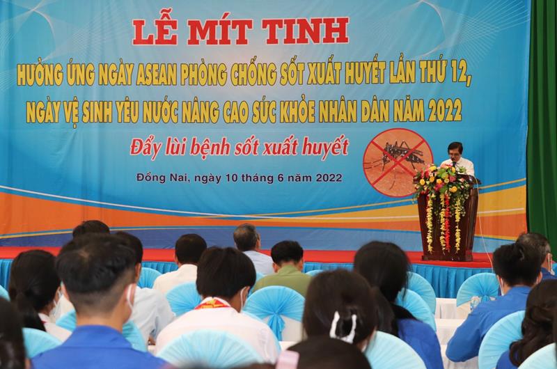Sáng 10-6, tại huyện Định Quán, Sở Y tế đã tổ chức Lễ mít tinh tuyến tỉnh hưởng ứng Ngày ASEAN phòng chống sốt xuất huyết (SXH) lần thứ 12, Ngày Vệ sinh yêu nước nâng cao sức khỏe nhân dân năm 2022. Phó Chủ tịch UBND tỉnh Nguyễn Sơn Hùng đã đến dự.