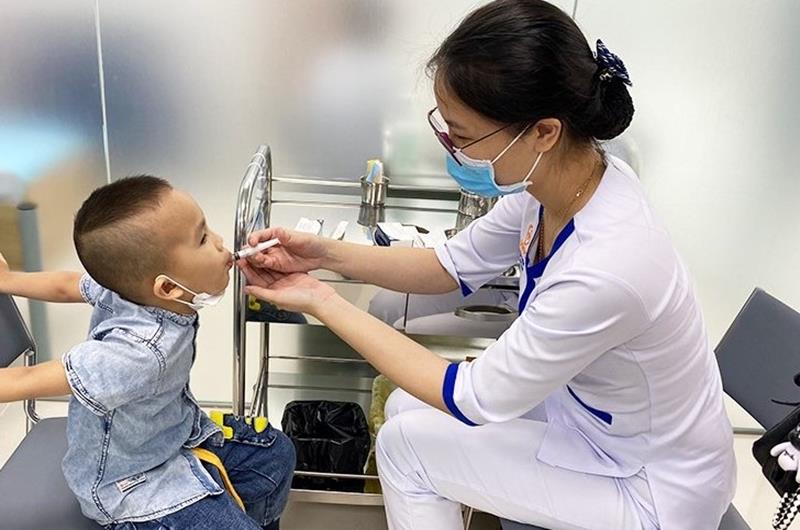 Trẻ em uống vaccine phòng bệnh tại VNVC Đồng Nai