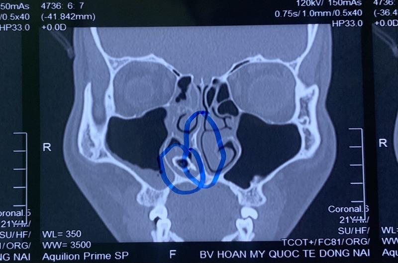 Bệnh nhân là anh N.G.L., 21 tuổi, ngụ TP.Biên Hòa, nhập viện trong tình trạng đau nhiều nửa đầu, chảy nước mũi màu vàng, hôi. Anh L. cho biết hay bị đau nửa đầu, đau hốc mắt bên phải, ngạt mũi và chảy nước mũi có mùi hôi đã nhiều năm nay. Tuy nhiên, anh chỉ mua thuốc tự uống chứ chưa từng đi khám ở bệnh viện nào.