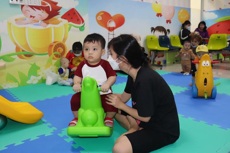 Trẻ vui chơi và theo dõi 30 phút sau khi tiêm chủng tại cơ sở y tế