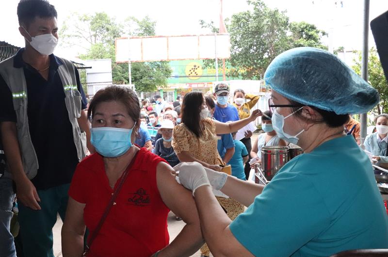 Nhân viên y tế xã Phú Hội (H.Nhơn Trạch) tiêm vaccine ngừa Covid-19 cho người dân.