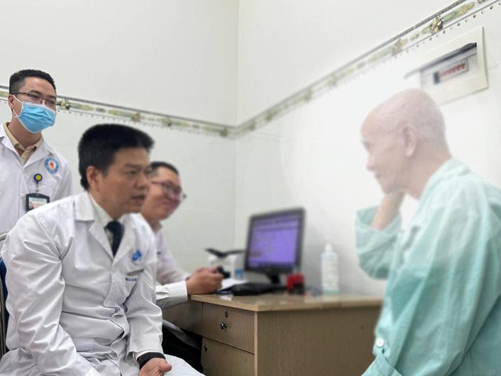 Chuyên gia thăm khám cho bệnh nhân bị bệnh vảy nến nặng tại Bệnh viện Da liễu Đồng Nai.