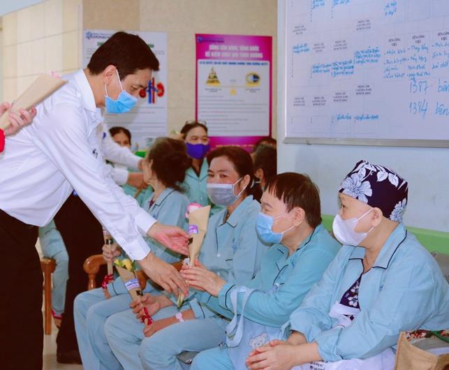 Lãnh đạo Bệnh viện Đa khoa Đồng Nai tặng hoa cho bệnh nhân ung thư