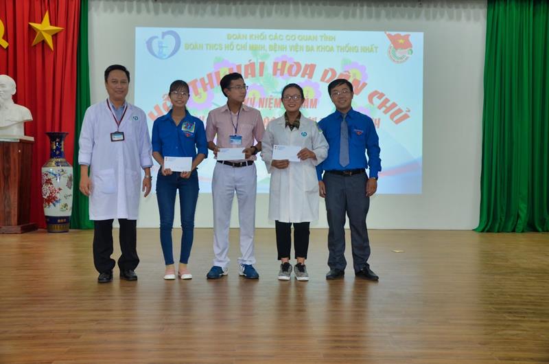 BS CKII.Nguyễn Hòa Hiệp, Trưởng khoa Nội tổng hợp Bệnh viện Đa khoa Thống Nhất (bìa trái) khen thưởng các y, bác sĩ trẻ tại một cuộc thi