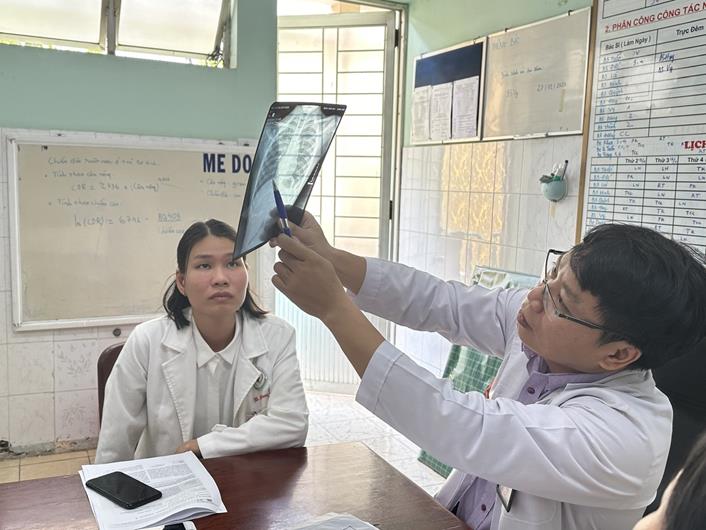 Bác sĩ chỉ những vết thương nguy hiểm của bệnh nhi trên phim chụp