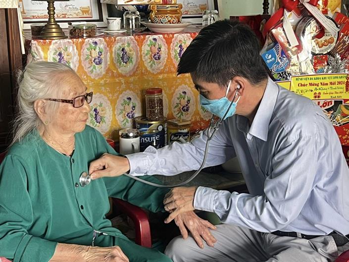 Bác sĩ Bệnh viện Đa khoa khu vực Long Khánh thăm, khám bệnh cho Mẹ Việt Nam anh hùng đang sinh sống trên địa bàn thành phố