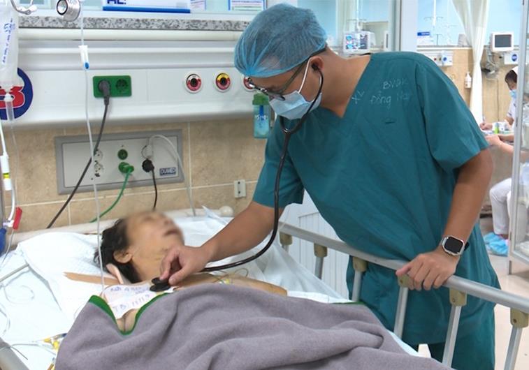 Bác sĩ kiểm tra sức khỏe cho bệnh nhân Giang Thị Ba