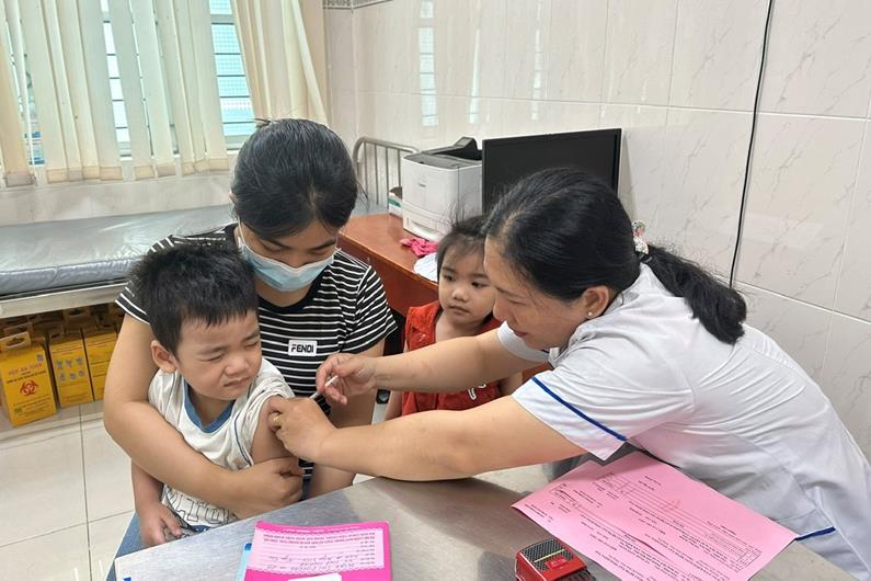 Tiêm vaccine phòng bệnh cho trẻ tại Trung tâm Kiểm soát bệnh tật tỉnh