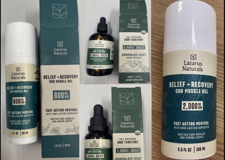 Theo đó, thực phẩm chức năng có nhãn hiệu "Lazarus Naturals Full Spectrum CBD TINCTURE" và "Lazarus Naturals RELIEF + RECOVERY CBD MUSCLE GEL" được phát hiện có chứa chất ma túy tổng hợp Delta-9-tetrahydrocanabinol (THC). Đây là chất ma túy được chiết xuất từ cây cần sa.