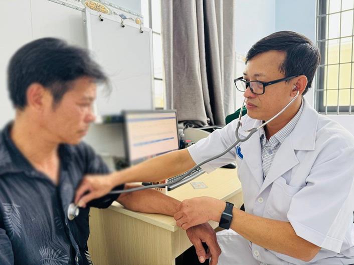 BS Trần Minh Đăng khám sức khỏe cho bệnh nhân tại trạm y tế