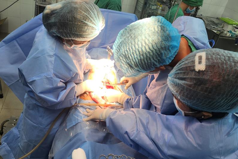 Các bác sĩ khẩn trương thực hiện ca phẫu thuật