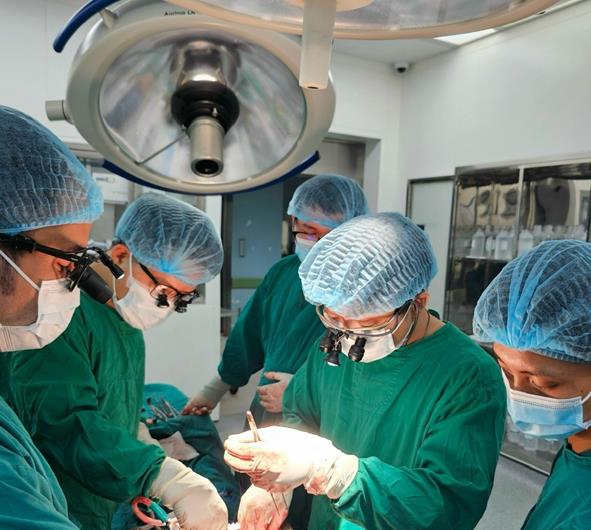 Các bác sĩ thực hiện ca phẫu thuật cắt khối u khổng lồ cho bệnh nhân