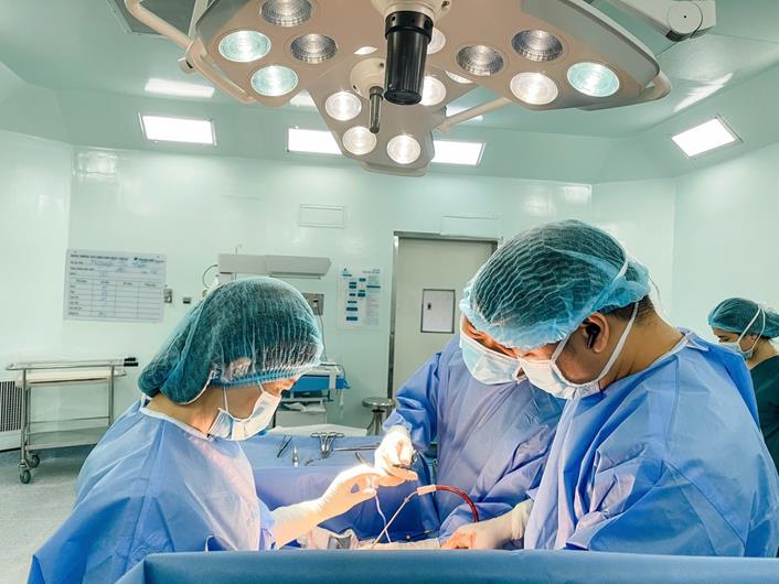 Các bác sĩ thực hiện ca phẫu thuật loại bỏ khối u cho bệnh nhân.