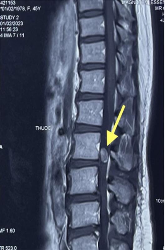 Vị trí khối u trong ống sống hiển thị trên phim chụp MRI