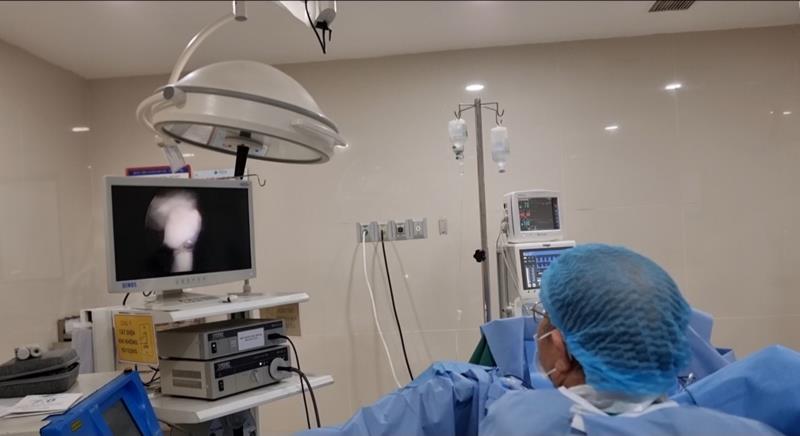 Để điều trị dứt điểm cho bệnh nhân, các bác sĩ đã thực hiện phương pháp phẫu thuật nội soi tán sỏi qua da bằng đường hầm nhỏ (Mini PCNL) với tư thế người bệnh nằm ngửa. Đây là một phương pháp ít xâm lấn, chỉ với một vết rạch rất nhỏ và mang đến hiệu quả cao, rất phù hợp với tình trạng của người bệnh hiện tại.