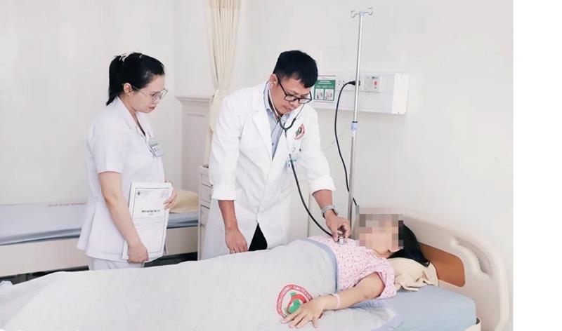 Bác sĩ khám sức khỏe cho chị C. sau ca phẫu thuật loại bỏ khối u
