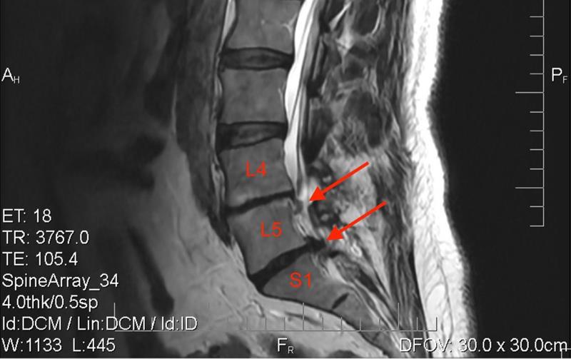 Tại Bệnh viện Hoàn Mỹ ITO Đồng Nai, các bác sĩ chẩn đoán bệnh nhân bị thoát vị đĩa đệm cột sống thắt lưng L4-L5 và L5-S1 tái phát gây chèn ép rễ thần kinh. Điều này khiến tình trạng đau nhức dữ dội ở vùng thắt lưng và lan xuống chân trái, gây tê bì, yếu cơ, đi lại khó khăn, chân trái teo rõ.