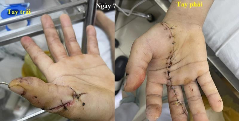 Đến nay, ngón tay bị đứt của cả 2 bệnh nhân đã hồng hào, hết sưng nề, không có dấu hiệu ứ máu, ngón tay vận động được, có cảm giác.