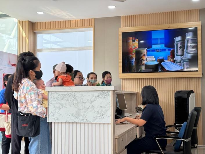 Nhiều phụ huynh đưa con đi khám bệnh đường hô hấp tại một phòng khám chuyên khoa Nhi trên địa bàn thành phố Biên Hòa.