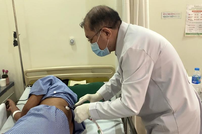 Bệnh nhân được chỉ định phẫu thuật, tuy nhiên do bệnh nhân có nhiều bệnh nền như: tim mạch, gan nhiễm mỡ, thể trạng mập, nên các bác sĩ đã hội chẩn chọn phương án mổ vừa lấy sạch sỏi cũng như đảm bảo sức khỏe cho người bệnh. BS CKII.Nguyễn Văn Truyện, khoa Ngoại sản liên chuyên khoa đã thực hiện phẫu thuật cho bệnh nhân bằng phương pháp tán sỏi nội soi ngược dòng bằng máy tán sỏi Laser và phương pháp Mini PCNL bằng máy công suất cao.