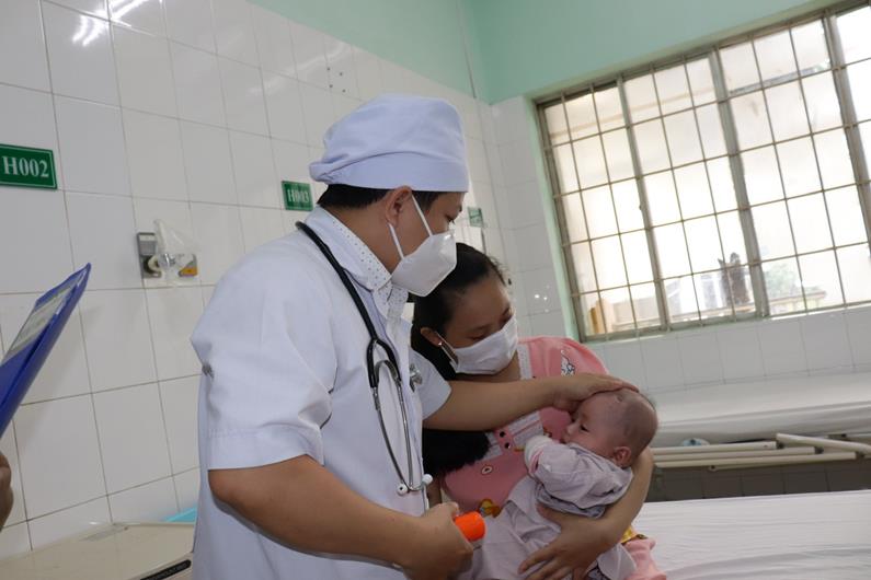 Nhân viên y tế Bệnh viện Nhi đồng Đồng Nai tập phục hồi chức năng cho trẻ chậm nói