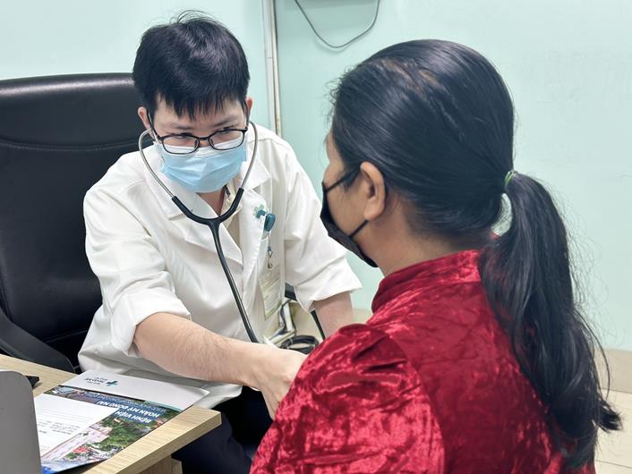 Bác sĩ khám bệnh cho bệnh nhân bị viêm phổi điều trị tại Bệnh viện Hoàn Mỹ Đồng Nai