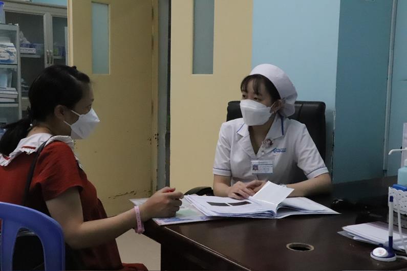 BS CK1 Trần Minh Tài, Phó trưởng Khoa Phụ sản Bệnh viện Đa khoa khu vực Long Khánh tư vấn cho một bệnh nhân bị u xơ tử cung