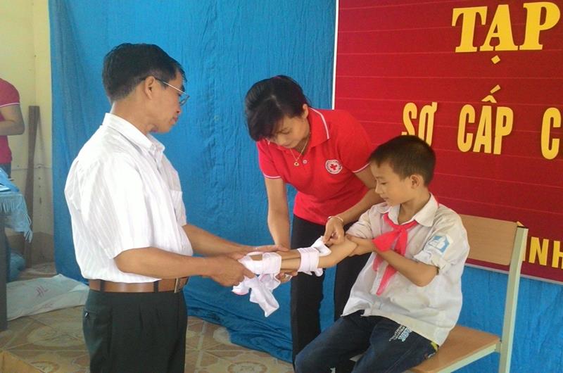 Hội Chữ thập đỏ tỉnh hướng dẫn người dân sơ cứu một trường hợp bị tai nạn thương tích