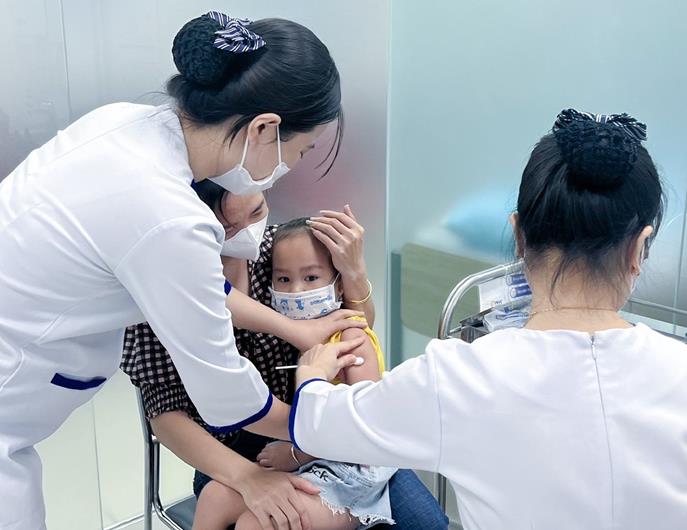 Trẻ em tiêm vaccine phòng sởi tại Trung tâm VNVC