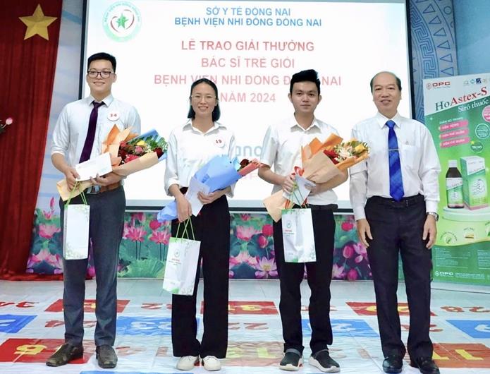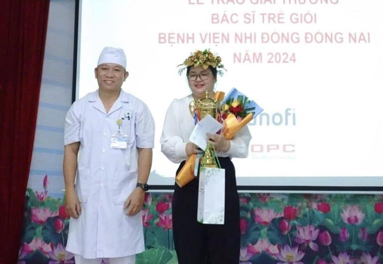 Giám đốc Bệnh viện Nhi đồng Đồng Nai Lê Anh Phong trao giải nhất cho bác sĩ Ngọc Châu