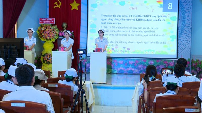 Trải qua 2 vòng thi lý thuyết và thực hành, ngày 25-6, bệnh viện đã tổ chức vòng thi chung kết với sự tham gia của 9 thí sinh xuất sắc. Các thí sinh đã trả lời các câu hỏi liên quan đến chuyên môn nghiệp vụ và đạo đức nghề nghiệp của người điều dưỡng, kỹ thuật viên, dược sĩ.