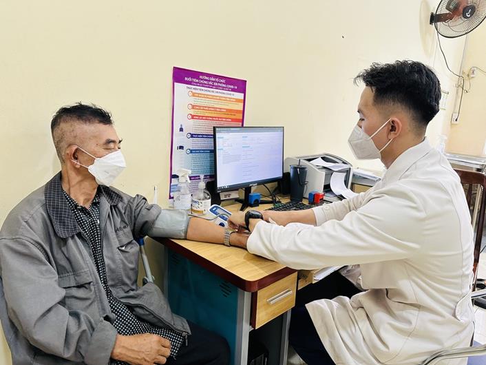Bác sĩ khám bệnh cho người dân tại Trung tâm Y tế huyện Long Thành