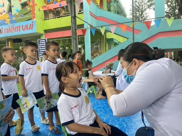Học sinh Trường mầm non Hoa Sen (TP.Biên Hòa) được khám sức khoẻ định kỳ vào đầu năm học 2023-2024