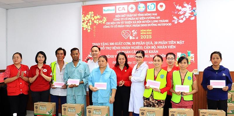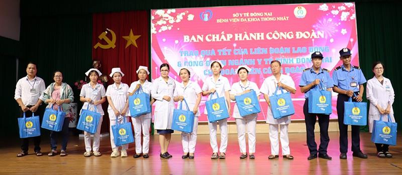 Lãnh đạo Bệnh viện Đa khoa Thống Nhất và đại diện Hội chữ thập đỏ tỉnh tặng quà cho các bệnh nhân, nhân viên y tế có hoàn cảnh khó khăn.