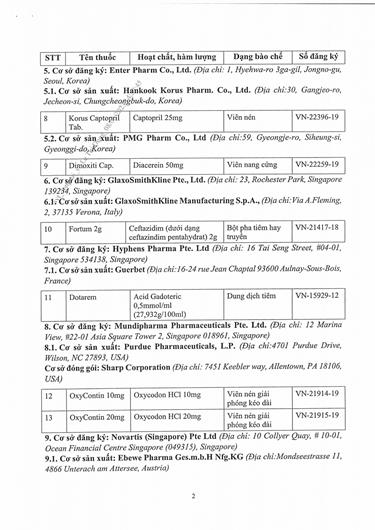Danh sách 25 loại thuốc bị thu hồi Giấy đăng ký lưu hành tại Việt Nam dưới ảnh.