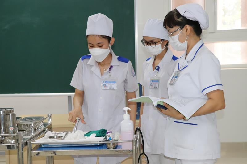 Sinh viên ngành Điều dưỡng, Trường Cao đẳng Y tế Đồng Nai trong một buổi thi thực hành