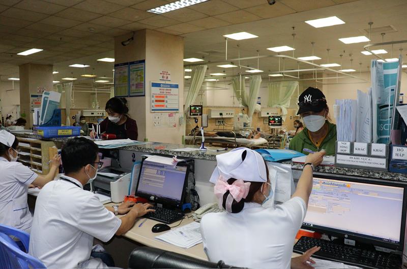 Nhân viên y tế nhập thông tin của bệnh nhân lên hệ thống quản lý