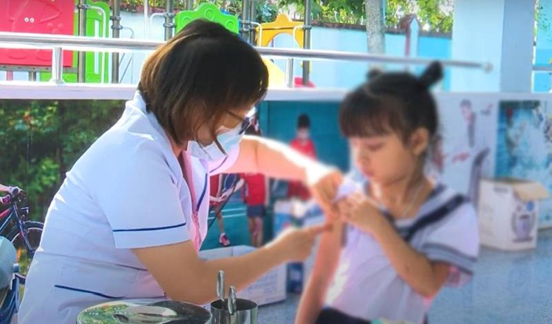 Tiêm vaccine sởi cho trẻ trong Chiến dịch tiêm vaccine sởi - rubella trên địa bàn tỉnh Đồng Nai.