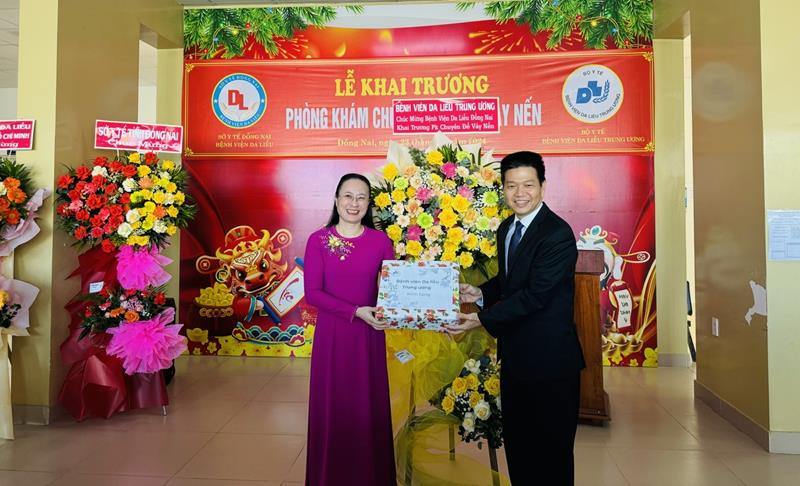 Giám đốc Bệnh viện Da liễu Trung ương tặng hoa, quà chúc mừng Bệnh viện Da liễu Đồng Nai