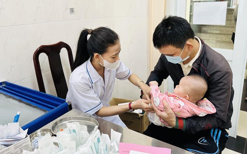 Tiêm vaccine cho trẻ tại Trung tâm Kiểm soát bệnh tật tỉnh