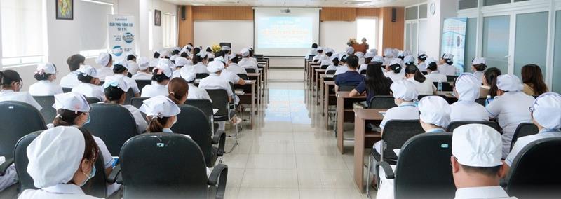 Các đại biểu chú ý lắng nghe chia sẻ của các chuyên gia về kiểm soát nhiễm khuẩn