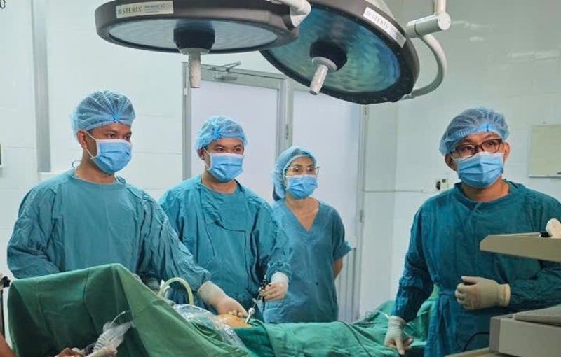 Nhận thấy tính chất nghiêm trọng của ca bệnh, ê kíp khoa Ngoại tổng hợp đã nhanh chóng hội chẩn và tiến hành phẫu thuật nội soi thám sát. Trong quá trình phẫu thuật, các bác sĩ phát hiện bệnh nhân bị thủng ổ loét dạ dày, dịch thức ăn tràn vào ổ bụng gây viêm phúc mạc toàn thể và viêm ruột thừa thứ phát. Các bác sĩ đã thực hiện khâu lỗ thủng dạ dày, cắt ruột thừa, rửa ổ bụng và đặt dẫn lưu ổ bụng.