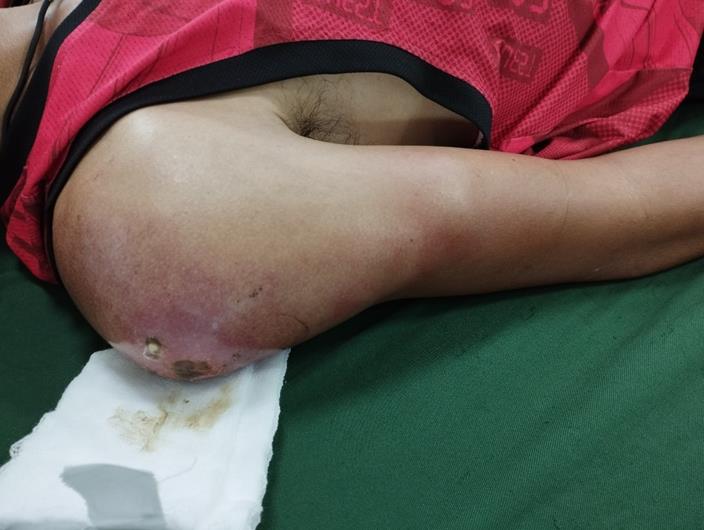 Vai anh D. bị sưng to và mưng mủ nghiêm trọng