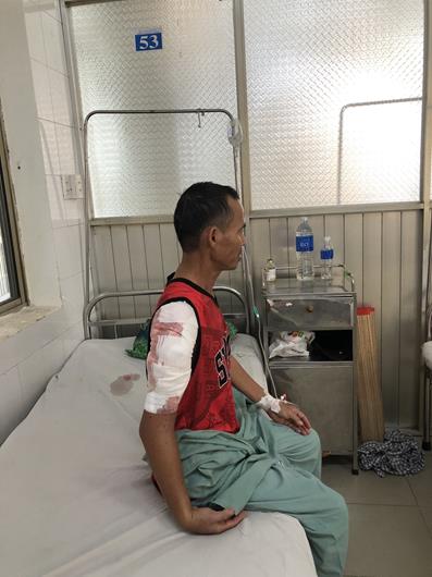Anh D. sau khi được phẫu thuật cắt lọc vai