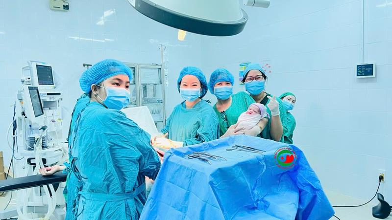 Các bác sĩ, điều dưỡng Trung tâm y tế huyện Cẩm Mỹ đỡ đẻ thành công cho một sản phụ